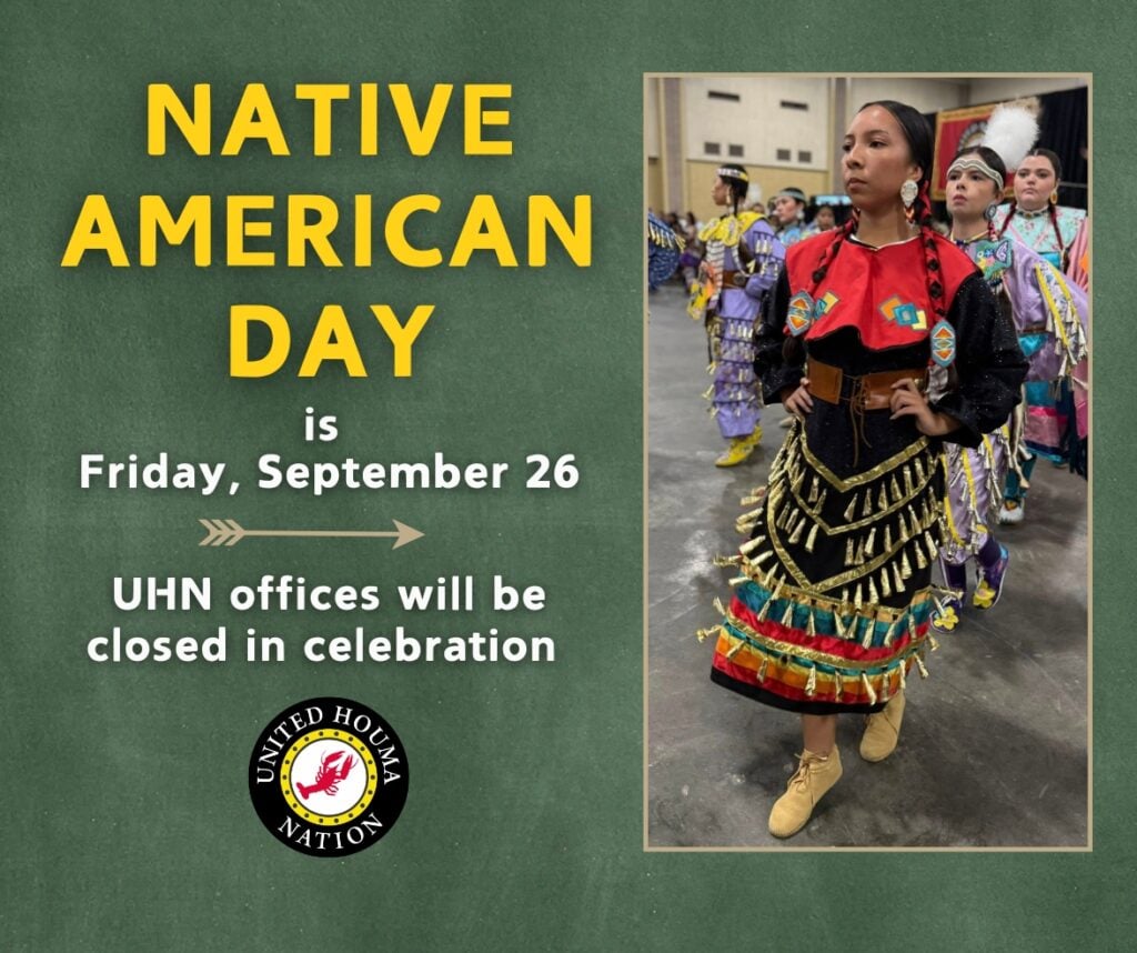 Friday, September 26, 2025 is Native American Day, and the United Houma Nation’s offices will be closed in celebration.