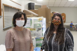 (Left) Jennifer Armond, Executive Director of the Bayou Community Foundation, and (Right) Lanor Curole, Administrator of the United Houma Nation working together to count and prepare the supplies to send out.